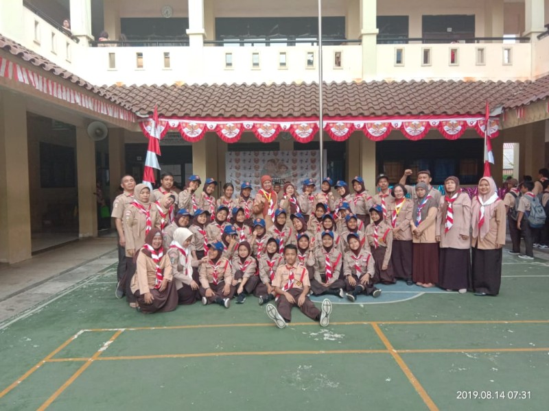 sekolah, guru, siswa, staf TU terlihat gagah karena mengenakan seragam pramuka